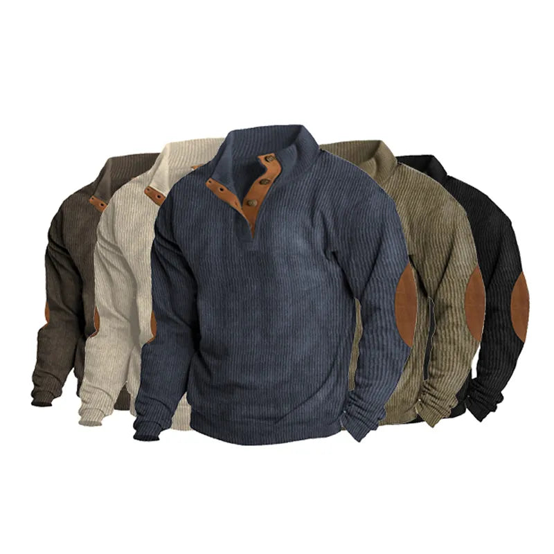 Men's Outdoor Casual Standing Collar Corduroy Sweatshirt Lightweight Pullover