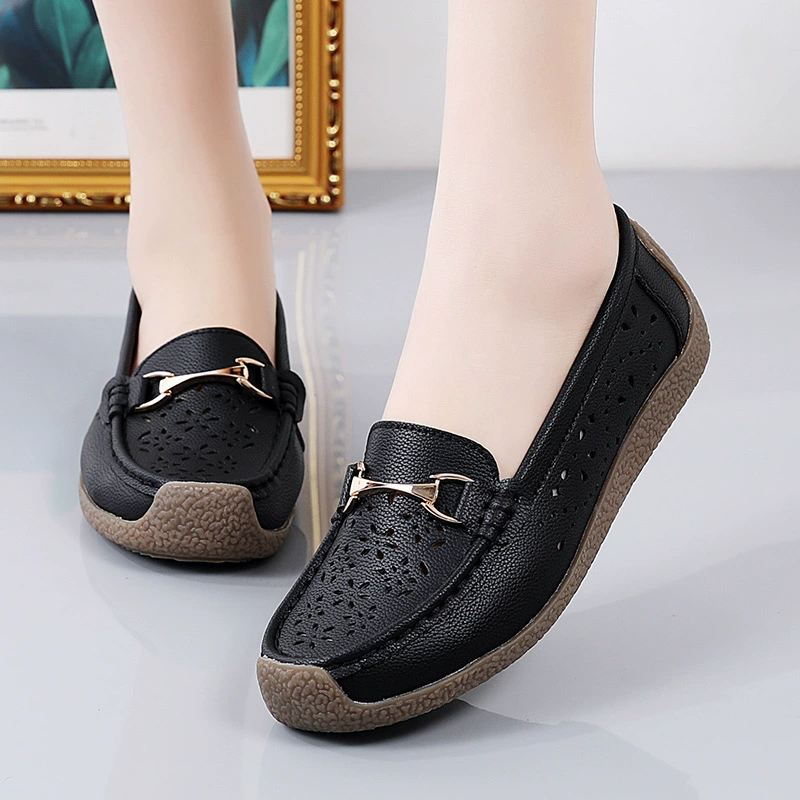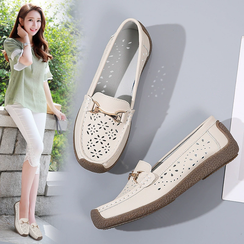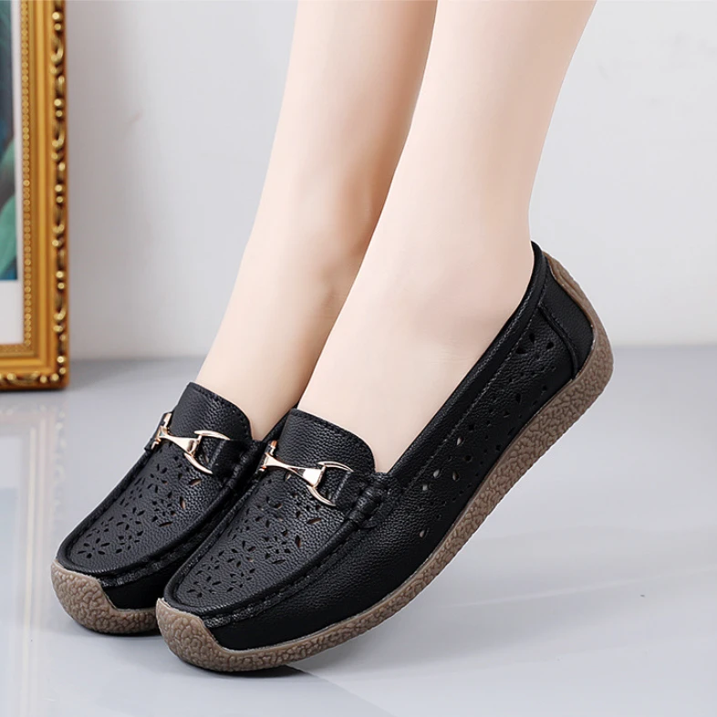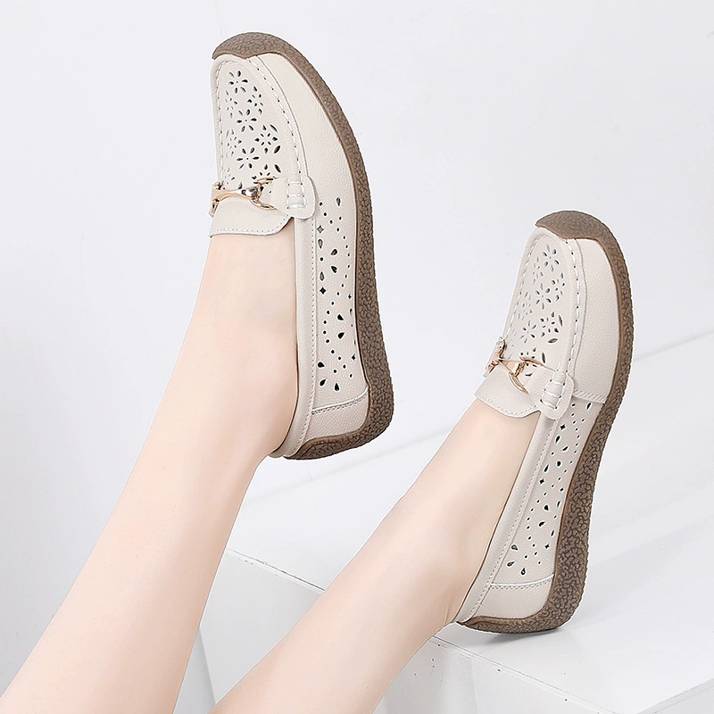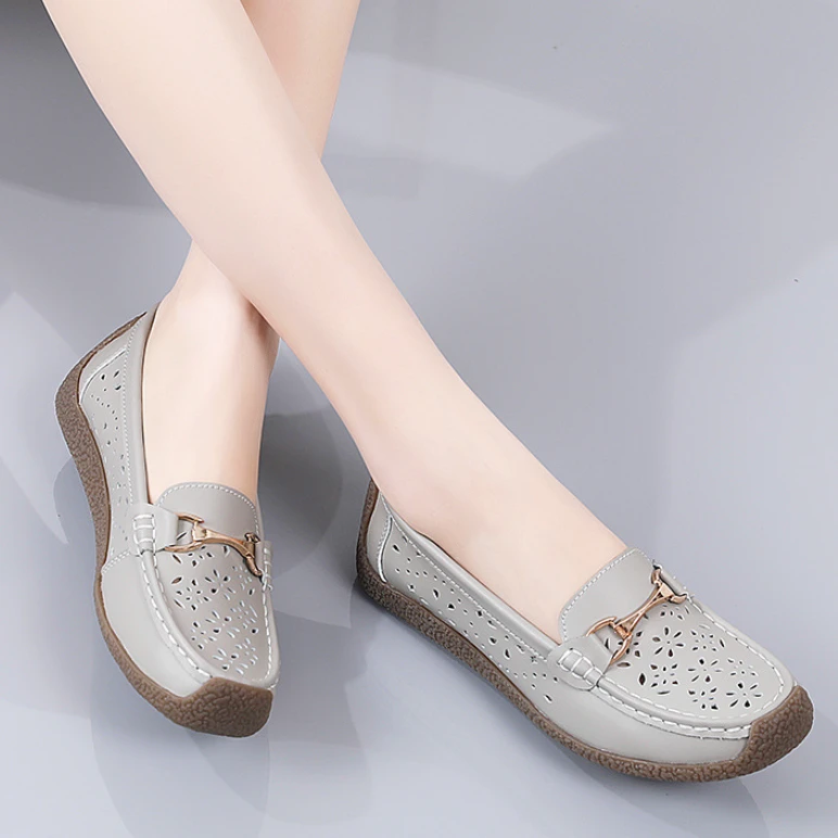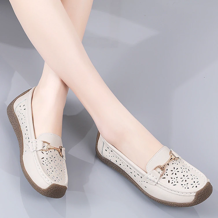 Women's Summer Genuine Leather Hollow Out Breathable Orthopedic Loafers