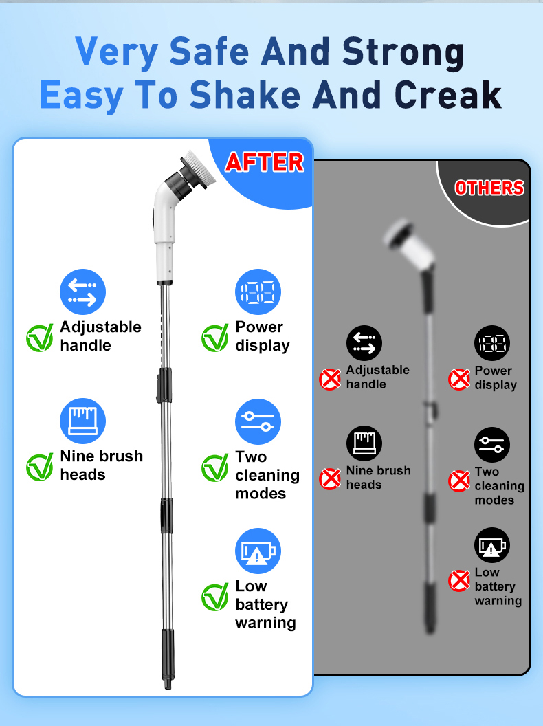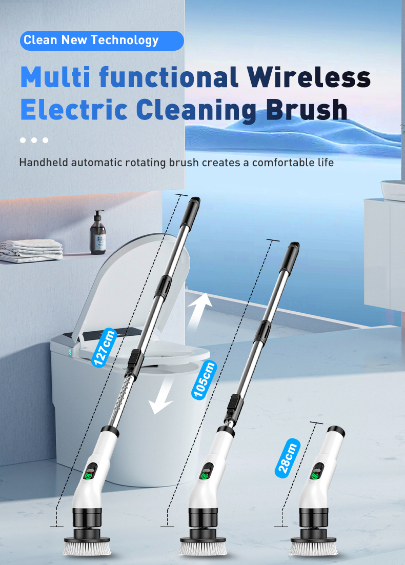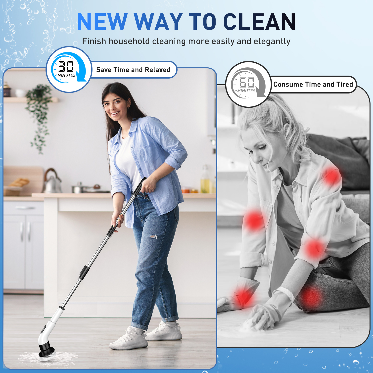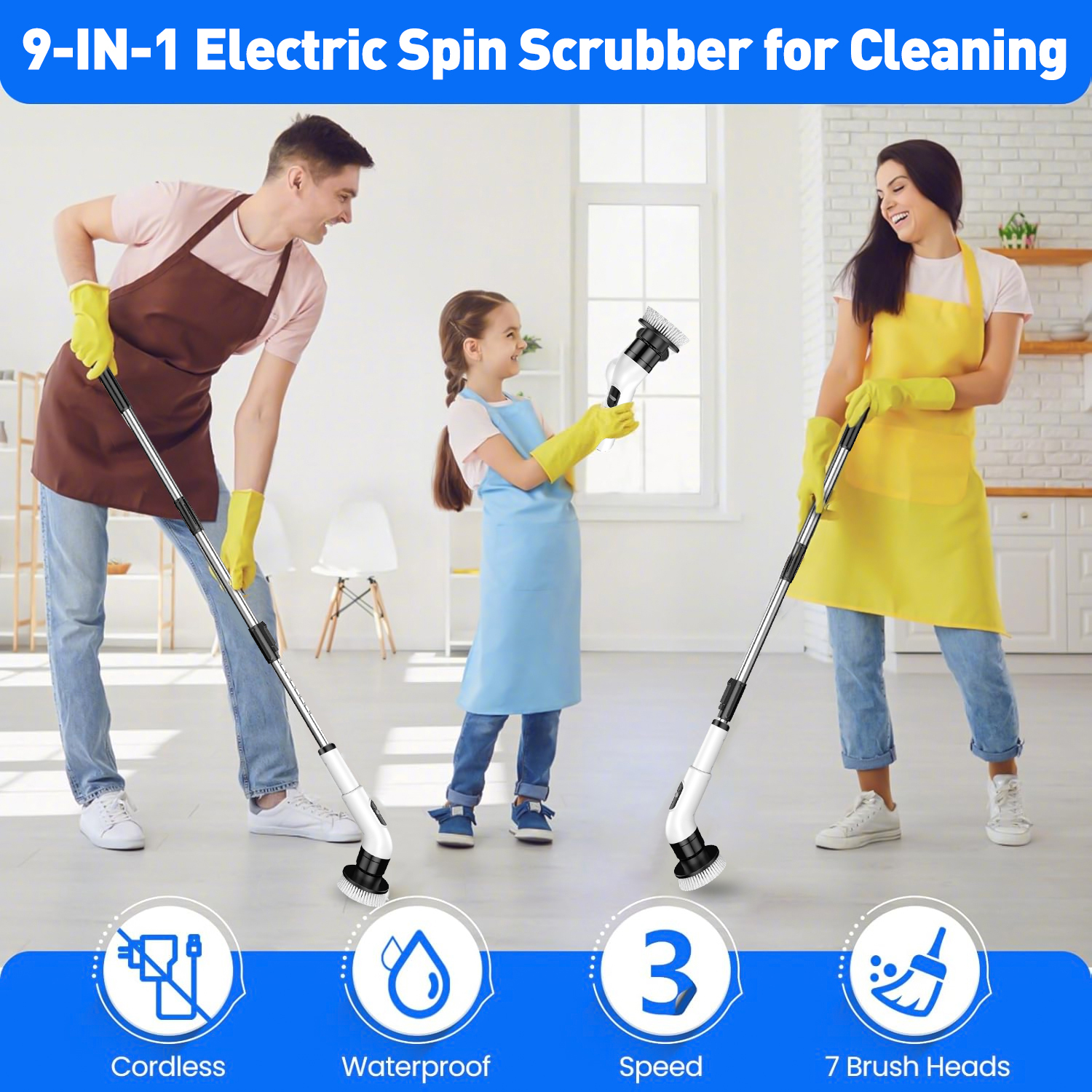 Yooje Electric Spin Scrubber Cordless Cleaning Brush Scrubber for Home 9 Replaceable Brush Heads