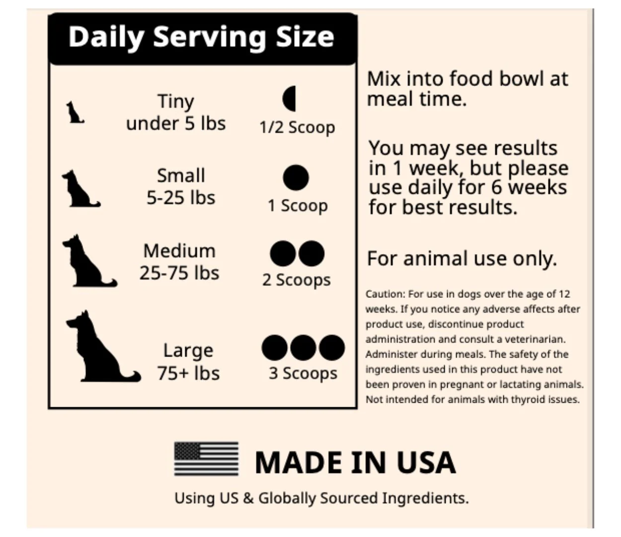 I tried it on both of my two Goldendoodles food - to my delight the both ate it and seemed to enjoy it. I imagine it will take consistent use to see results but am encouraged so far.