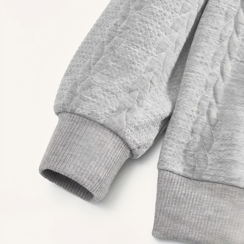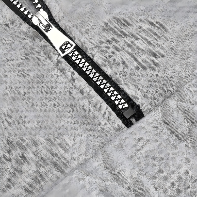 Incredibly soft and warm — perfect for layering. The zipper is smooth and the patchwork detail looks even better in person.